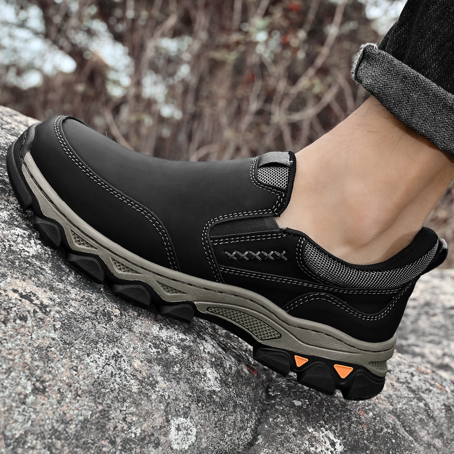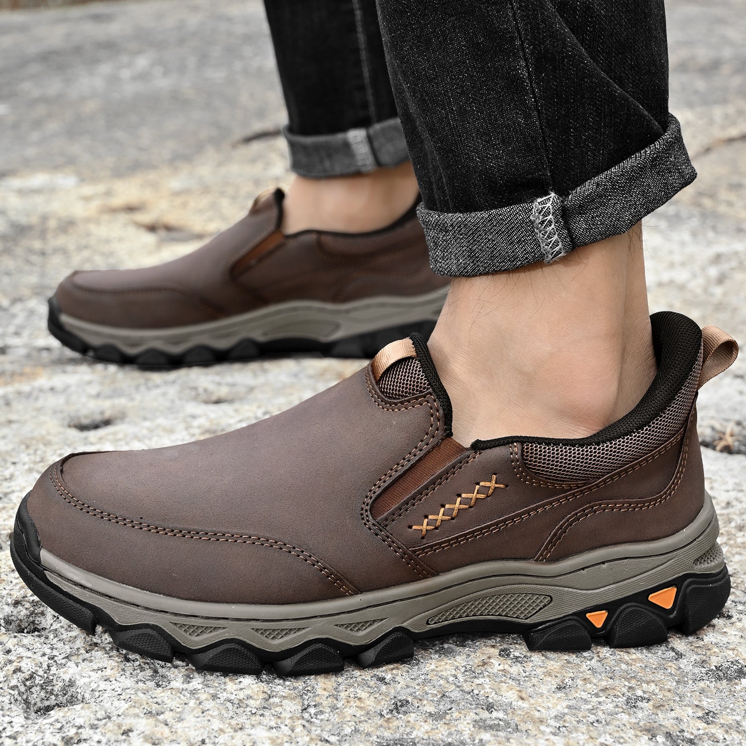 Mostelo® Mens Slip On Casual Outdoor Leather Walking Hiking Shoes V3686